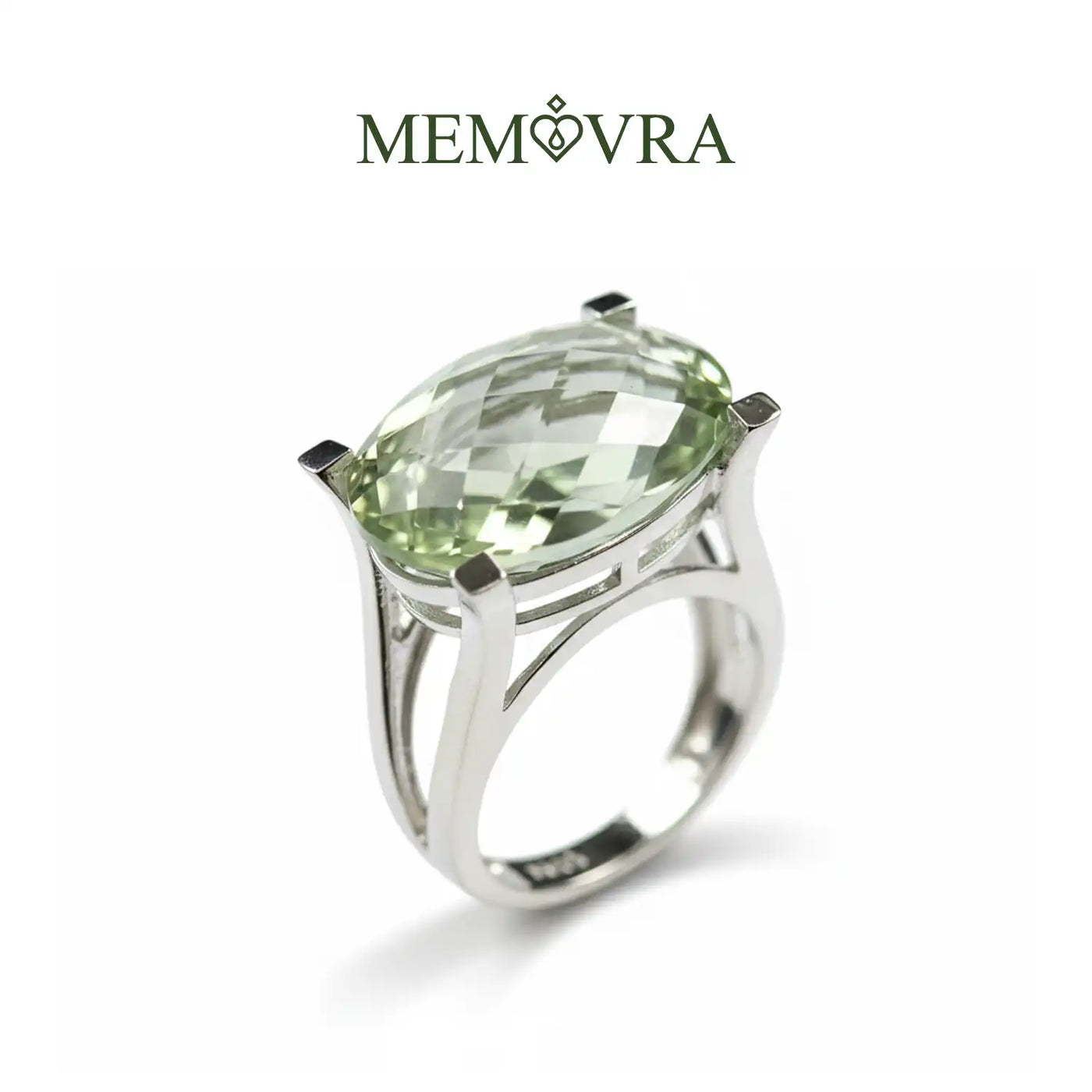 Elegant green amethyst set in 925 sterling silver, designed in a simple and classic style. Perfect for anniversaries or as a thoughtful gift for women. Free shipping included.