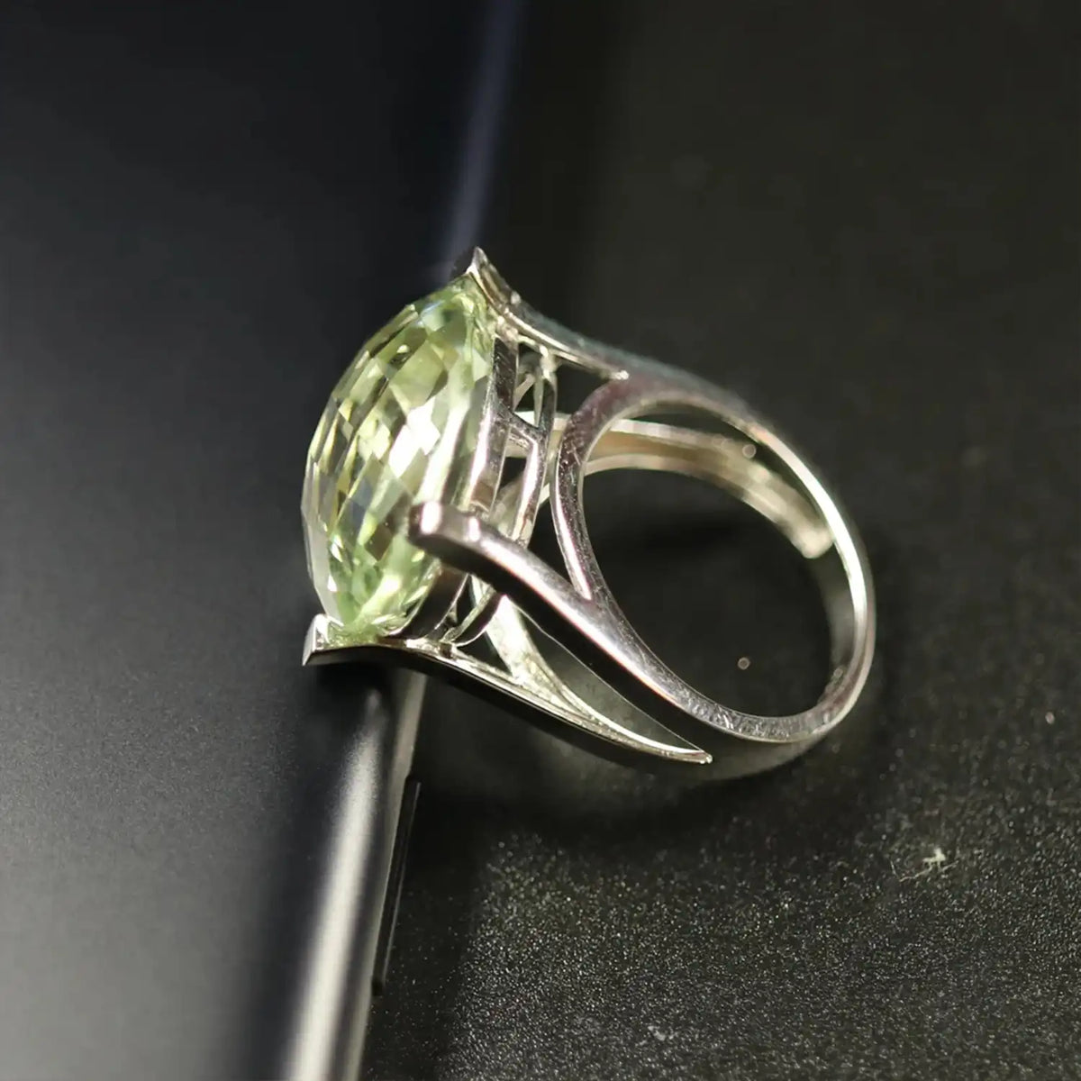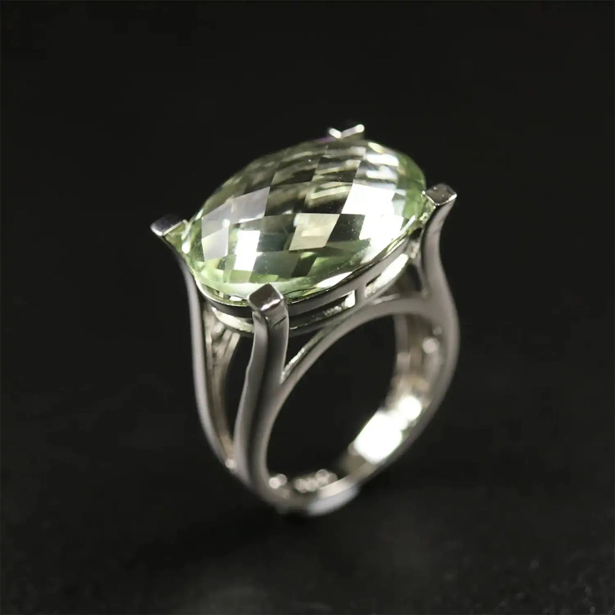 Natural Green Amethyst Sterling Silver Ring - 925 Sterling Silver / Green Amethyst / 6