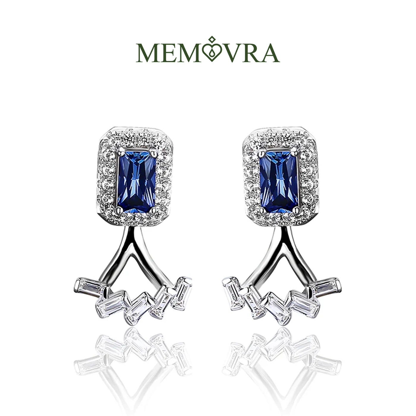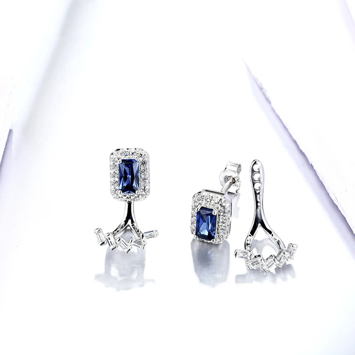 Blue Sapphire Geometric Stud Earrings - 925 Sterling Silver / Created Sapphire