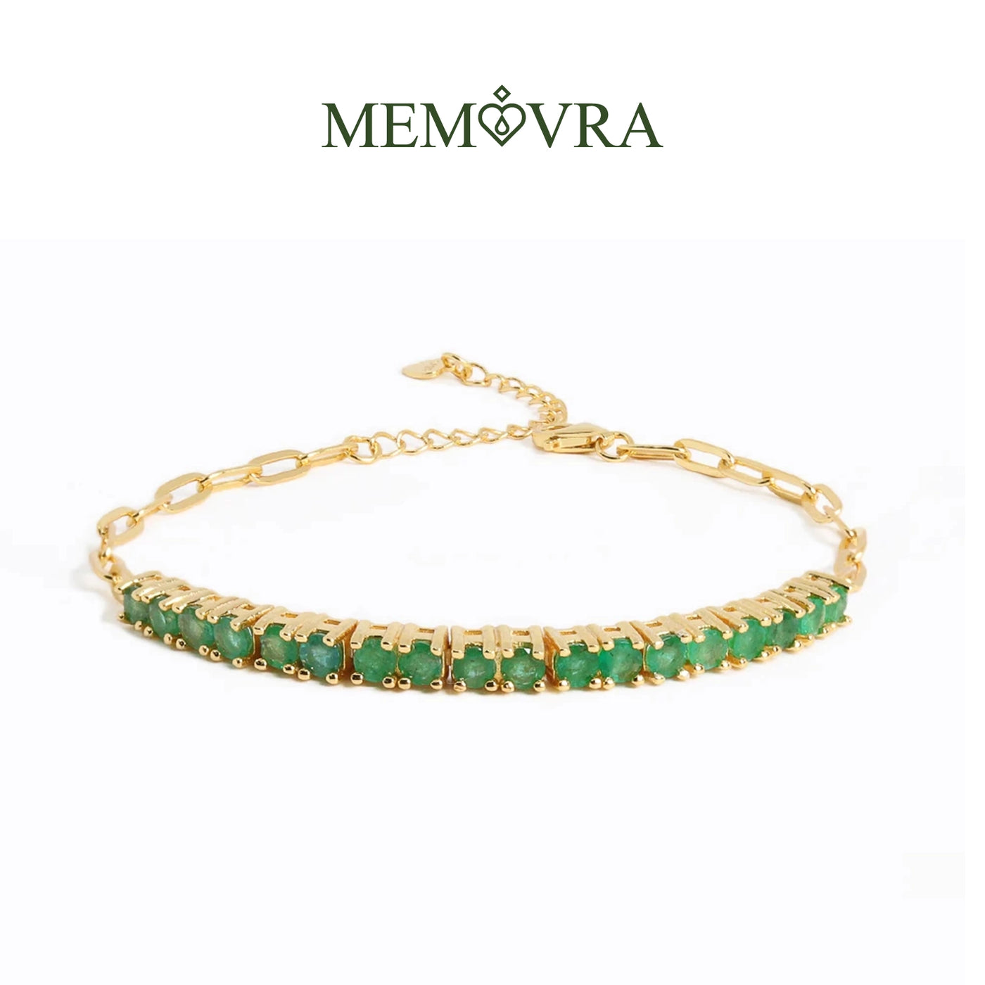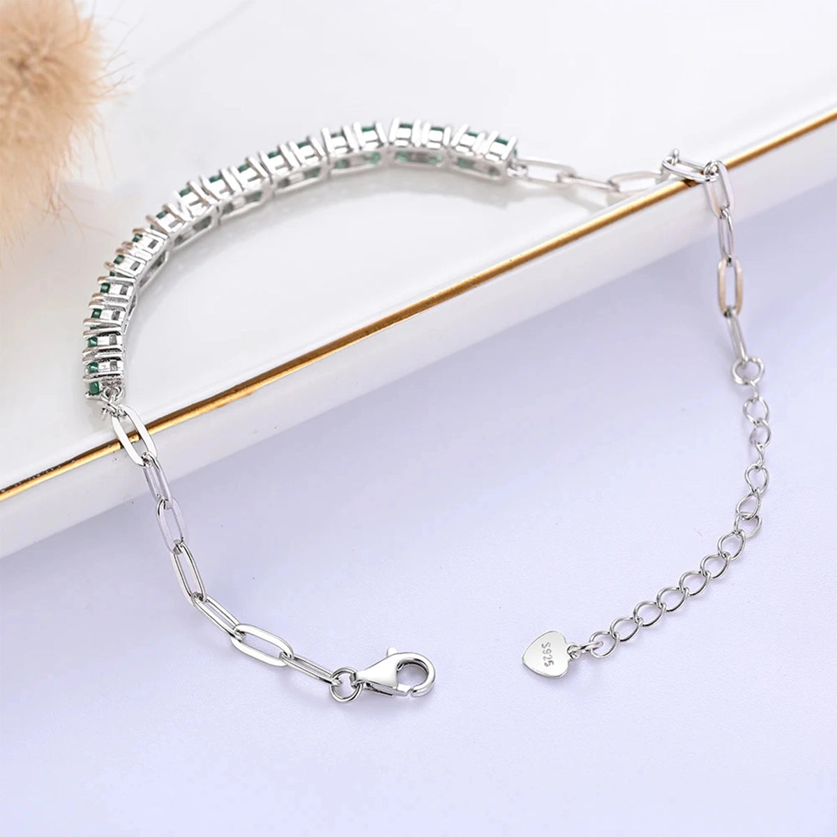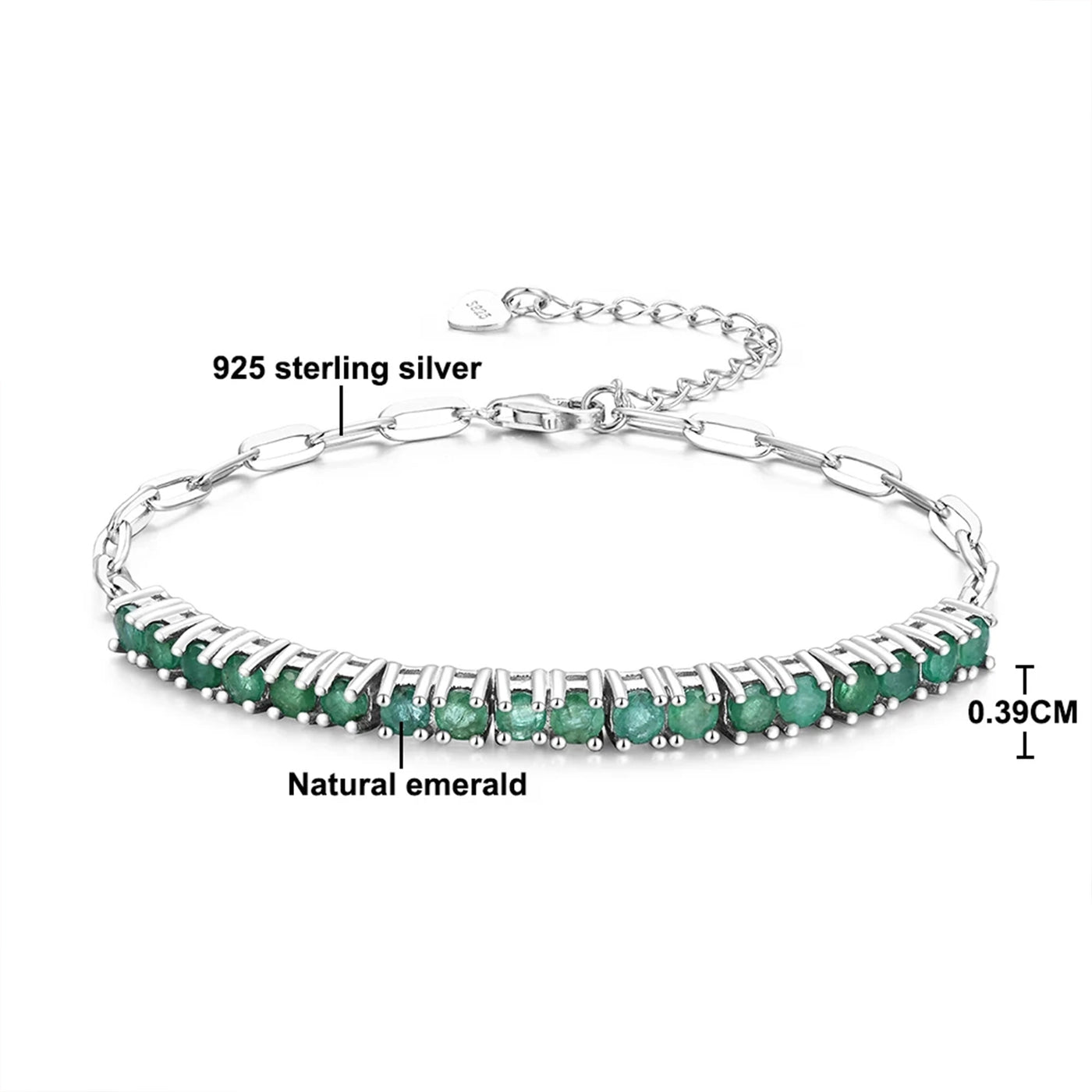 An elegant and exquisite bracelet featuring natural green emerald gemstones, set in 925 Sterling Silver. A perfect choice for weddings, banquets, and as a special gift. Free shipping included.