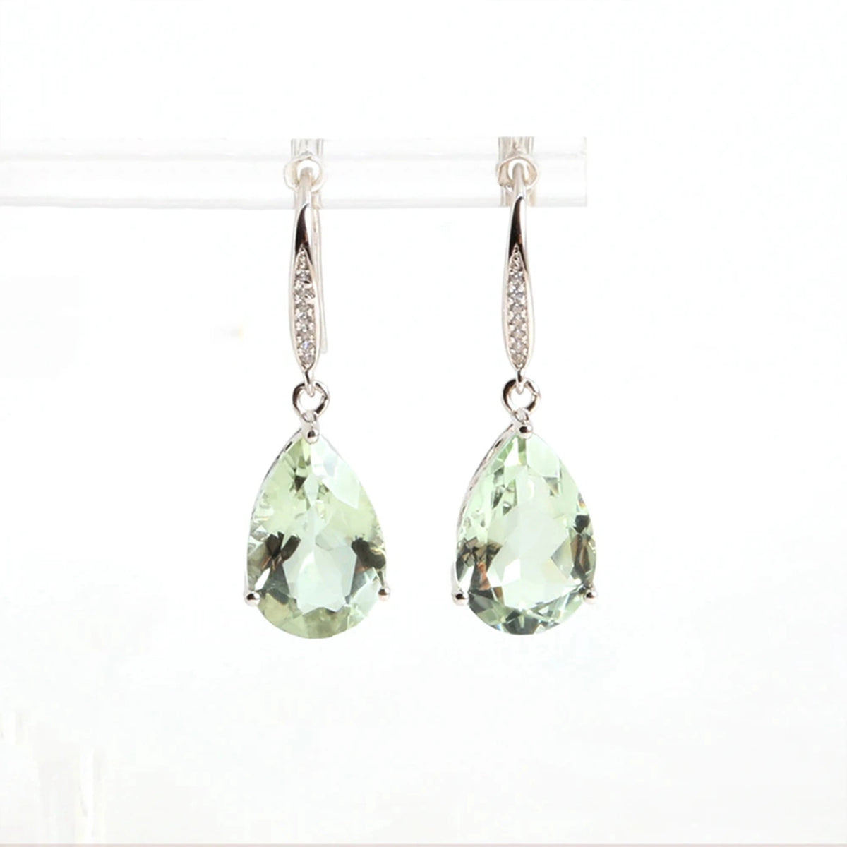 Add a pop of color to your look with these Simple Hook Earrings, featuring natural gemstones like green amethyst, purple amethyst, smoky quartz, and aquamarine in pear shapes, set in 925 Sterling Silver. Perfect for any party. Free shipping included.
