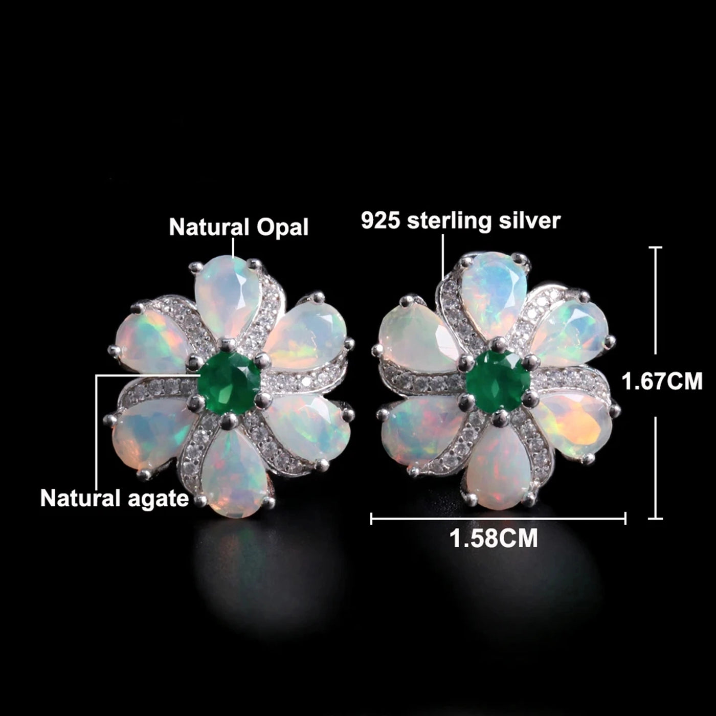 Elegantly designed, the Opal & Green Agate Silver Drop Earrings feature natural opal and green agate gemstones, set in 925 Sterling Silver. Perfect for anniversaries or special occasions. Free shipping included.