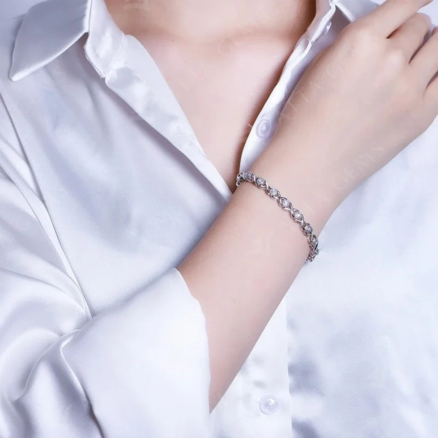 This elegant 1.25mm round Moissanite charm bracelet is crafted from solid 925 sterling silver and plated with 18K gold. Its sparkling stones and timeless design make it the perfect gift for engagements or weddings. Free shipping included.