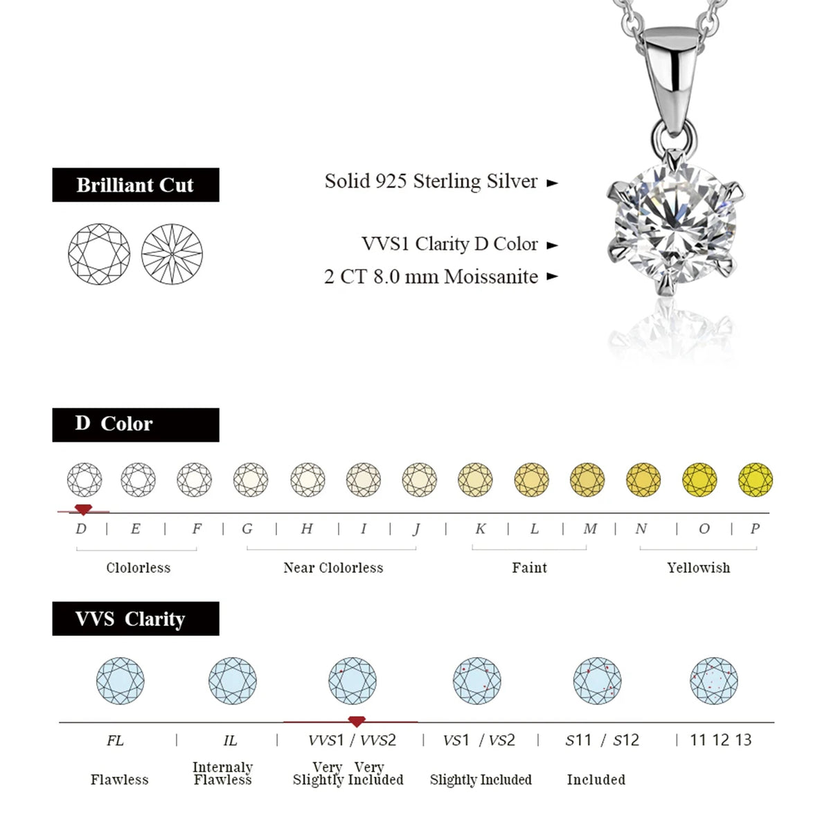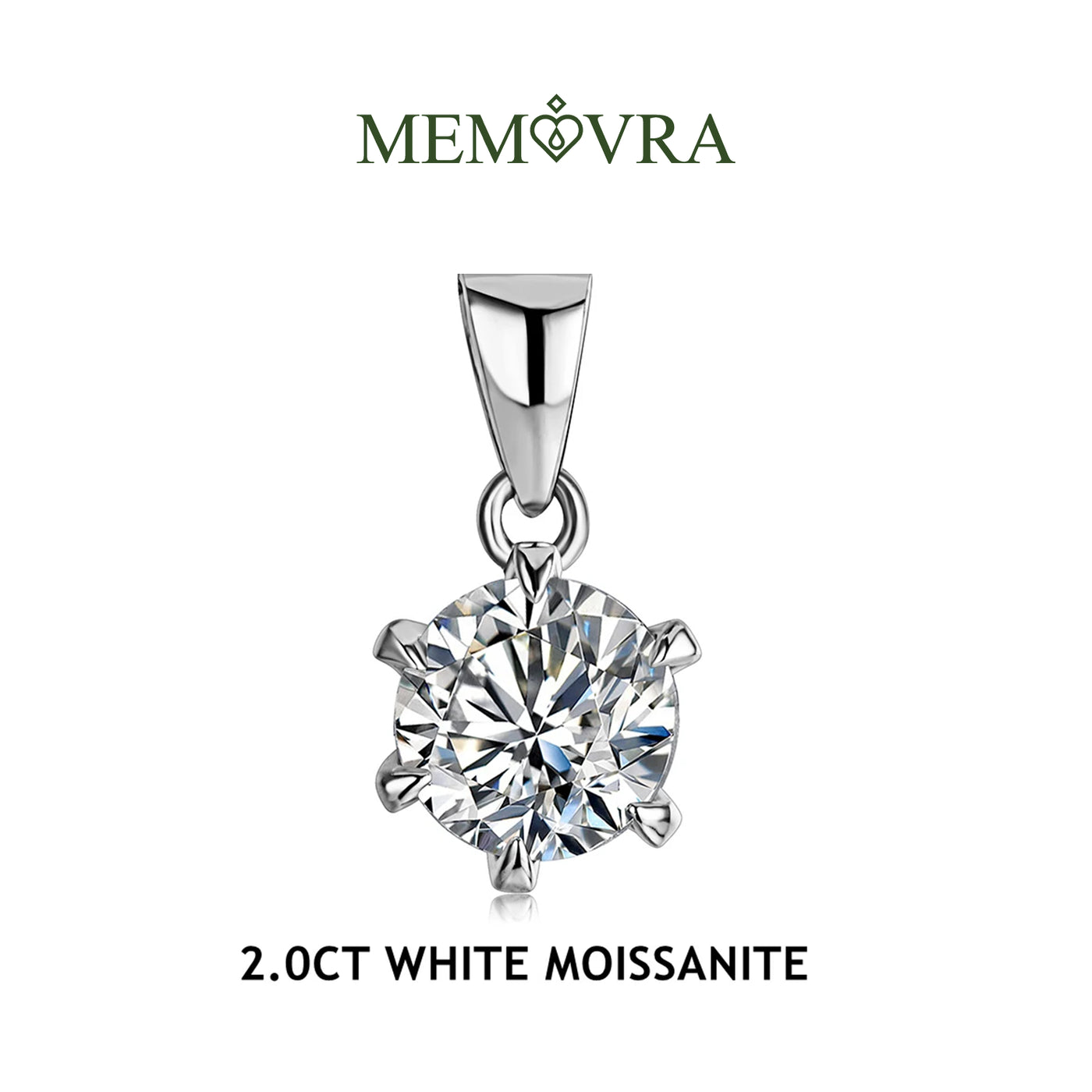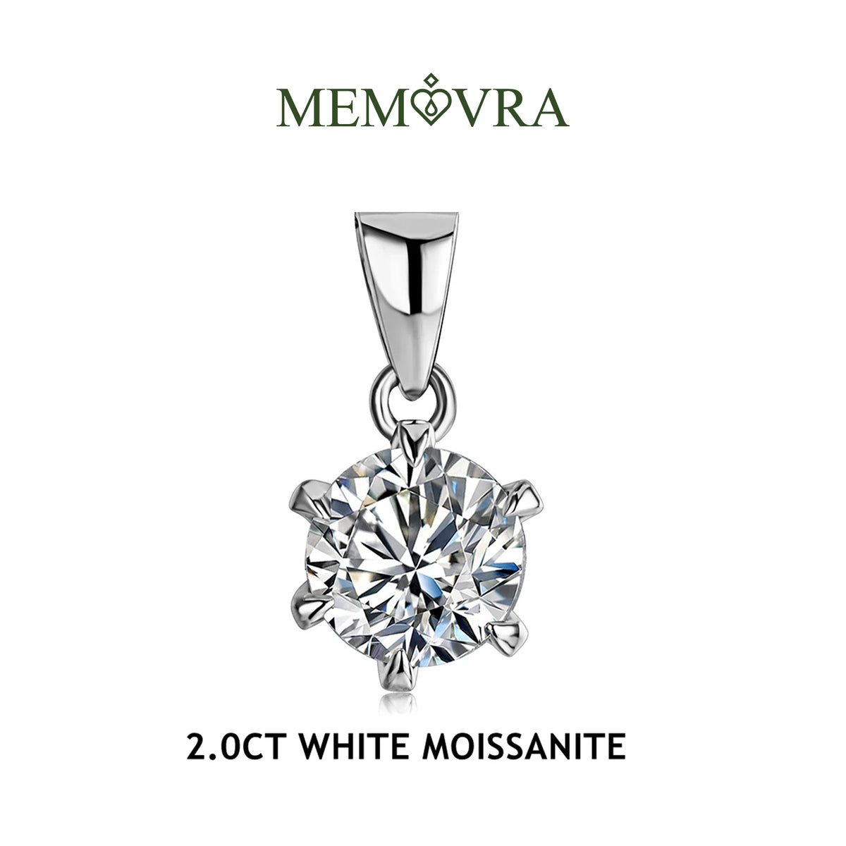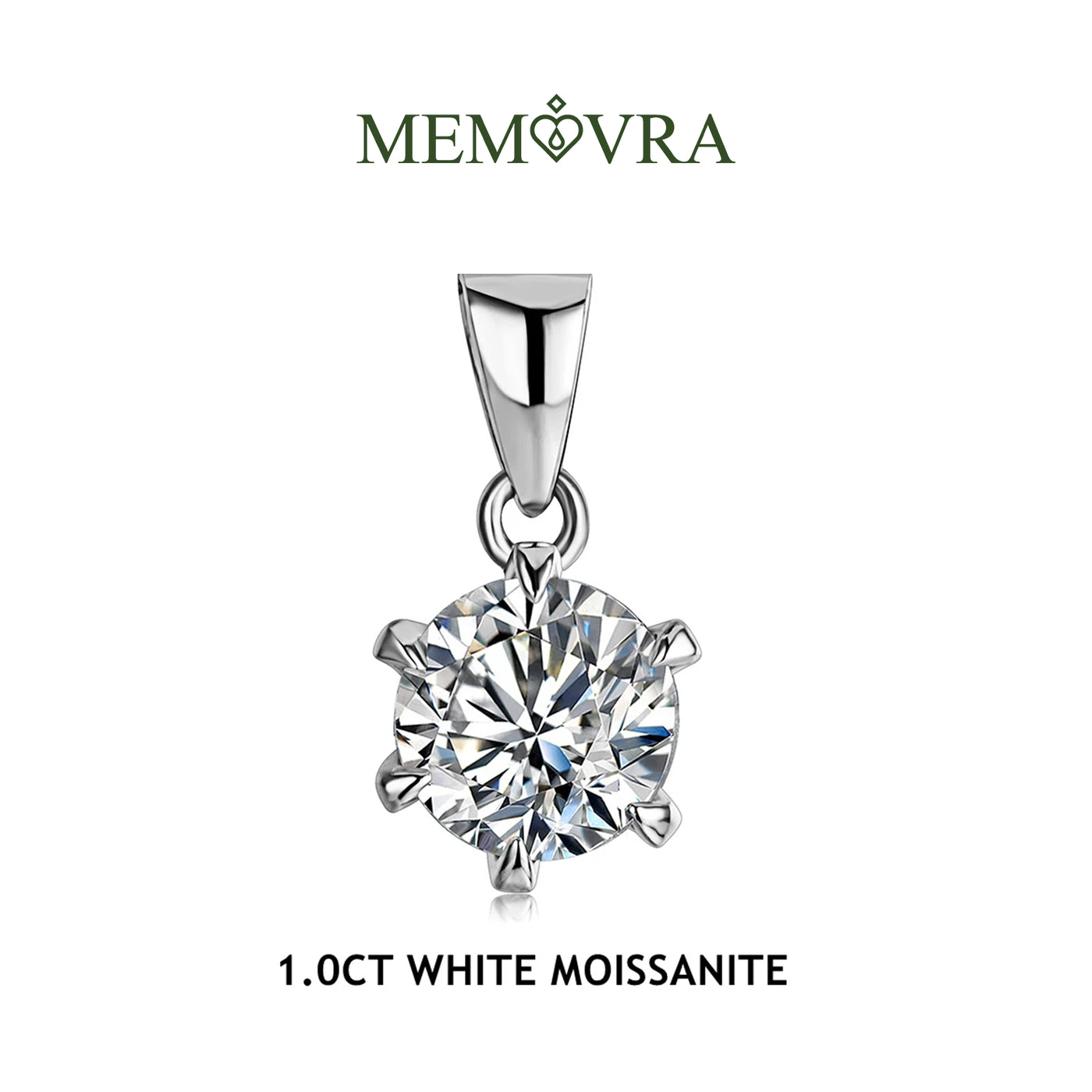 Memovra Classic Moissanite Diamond Pendant Necklace - 925 Sterling Silver / 1.0 white moissanite