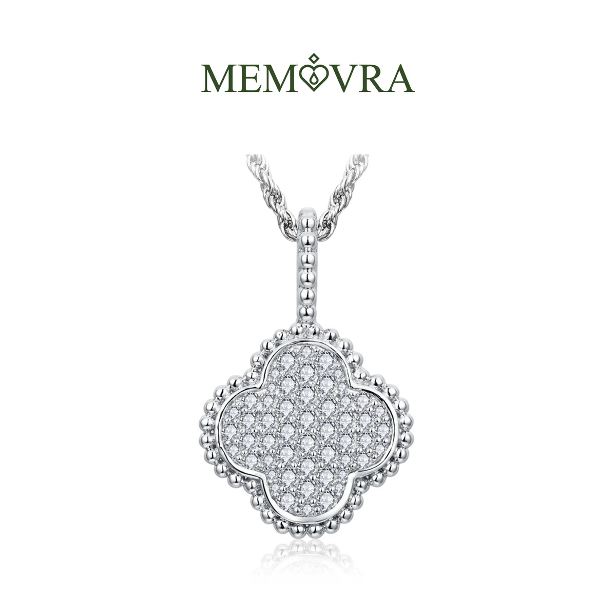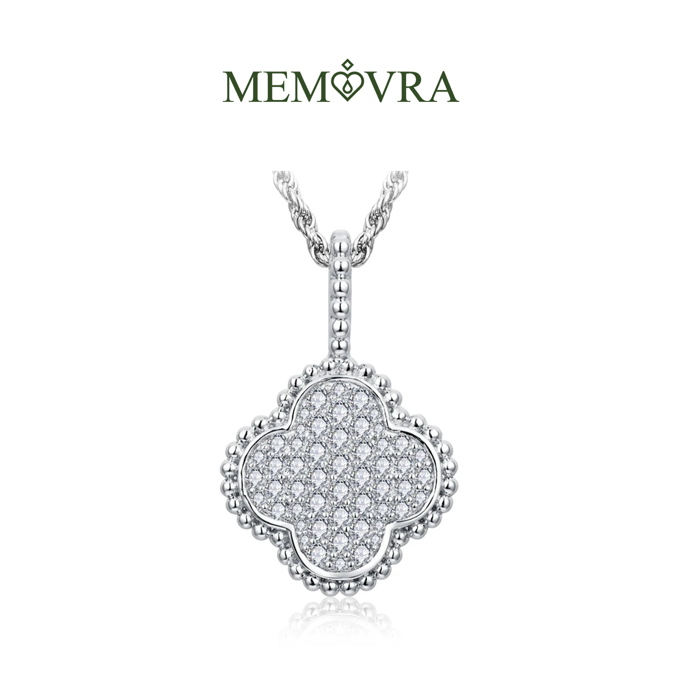 Elysian Moissanite Plant Pendant Necklace - 925 Sterling Silver / White Gold / 45cm